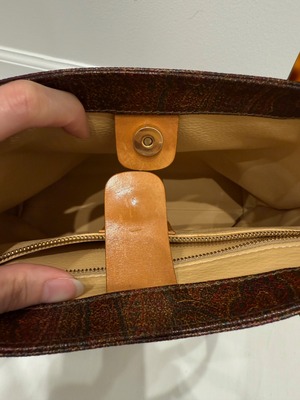 状態: 内側レザー部分に少し傷、汚れあり(7、8枚目参照)。10点中6〜7点程度。