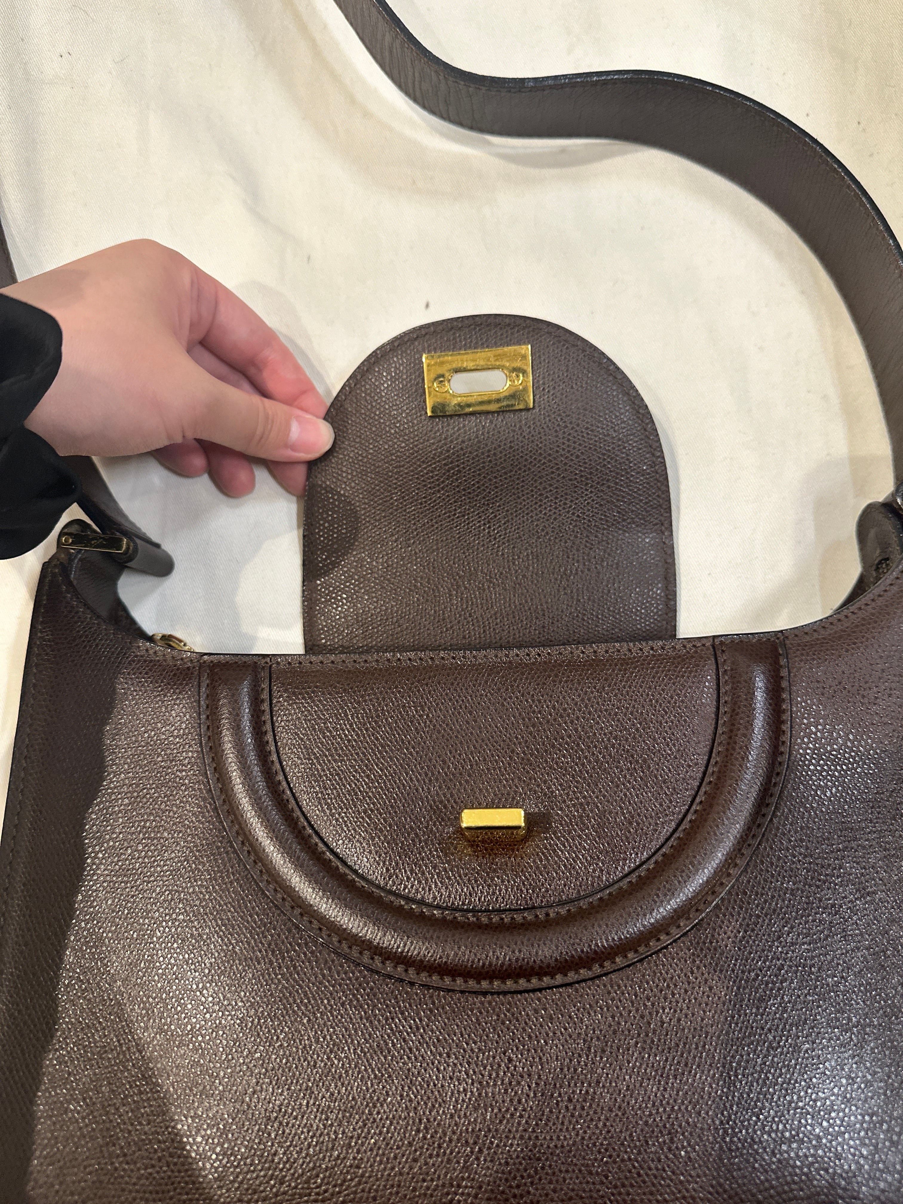 状態 : 全体的に使用感あり。メッキ部分傷、擦れあり(14~16枚目参照)。ショルダー部分折ジワあり(17,18枚目参照)。10点中6点程度。