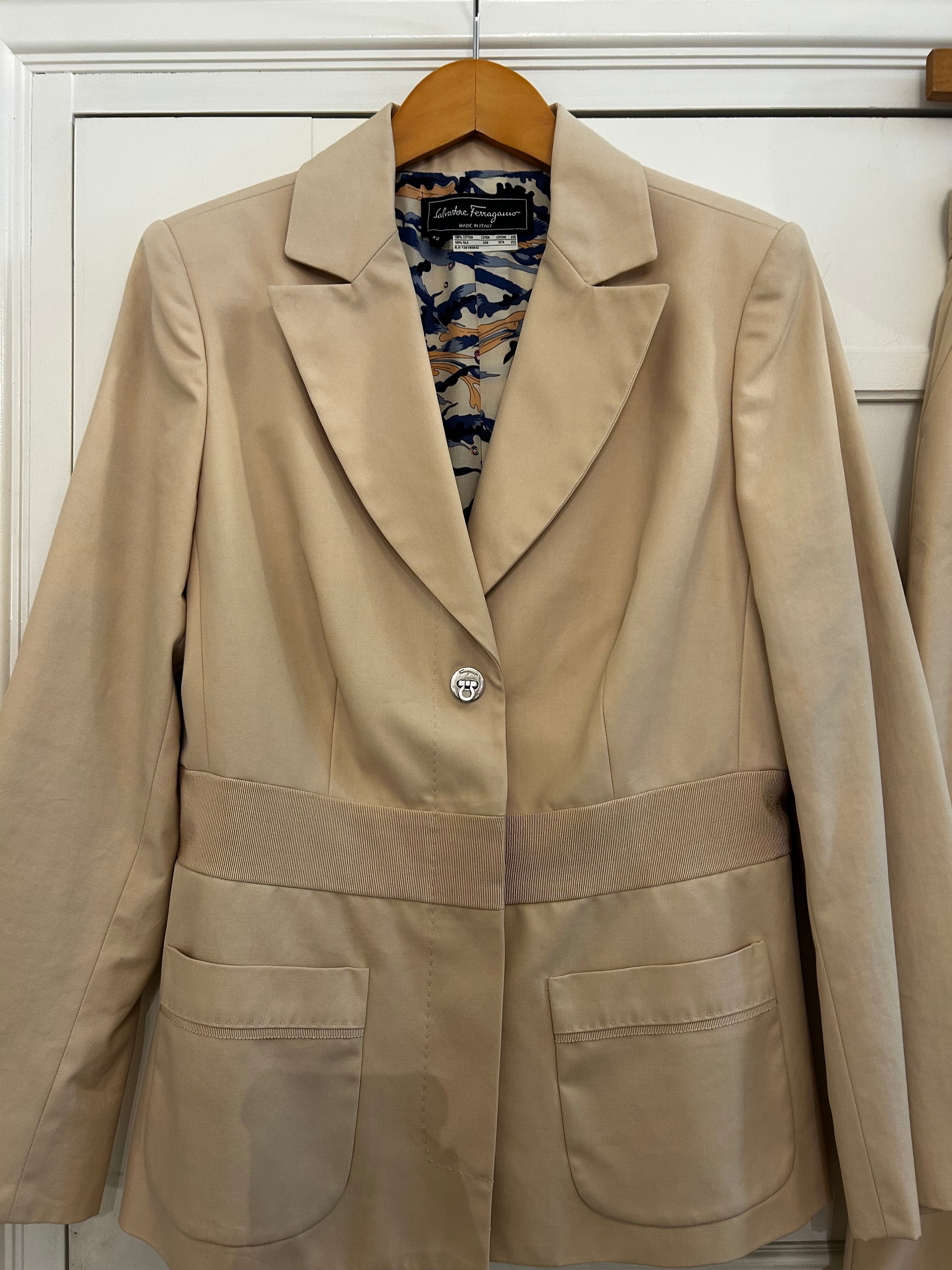 Material: (jacket) cotton 100% (jacket lining) silk 100% (pants) cotton 100%